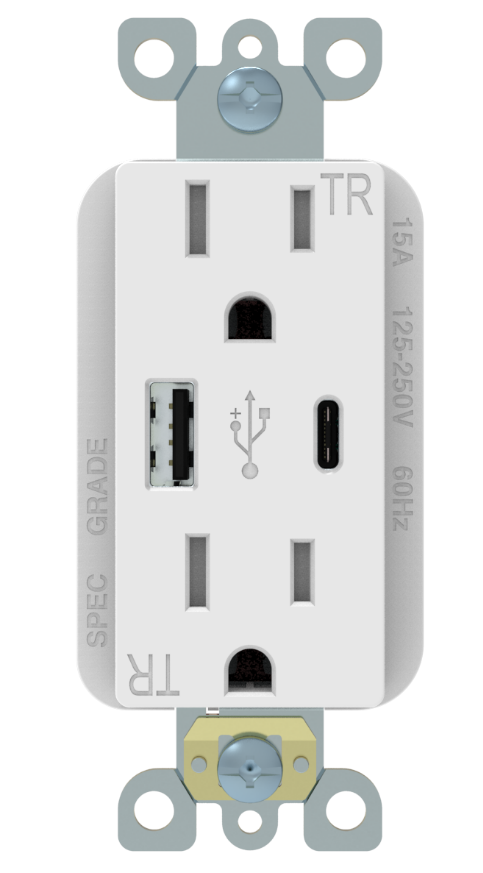 5VDC, 6.0A USB A&C Chargers/20 A, 125V, Decorator Tamper-Resistant Receptacle